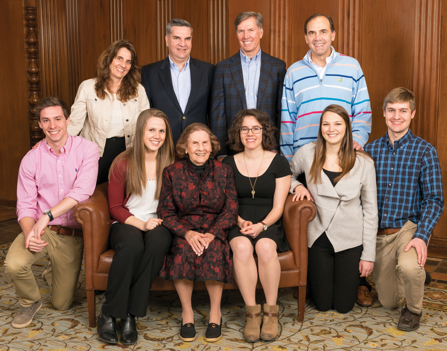 TOP: Alisa Lyons (AB ’83), Glenn Smith (AB ’85, JD ’89), S. Gregory Smith (AB ’74), Patrick A. Smith (AB ’76, MD ’80, MedRes ’85. BOTTOM: Jack Lyons (College of Literature, Science, and the Arts 2017), Casey Lyons (College of Literature, Science, and the Arts 2019), Regent Emerita Veronica Latta Smith (AB ’48), Samantha Lyons (College of Literature, Science, and the Arts 2016), Shelby Smith (School of Kinesiology 2016), Doug Smith (College of Literature, Science, and the Arts 2016) Children of Veronica and Stewart not pictured: Alison Hurley (BBA ’81), Paul Smith (BBA ’80, MBA ’84)